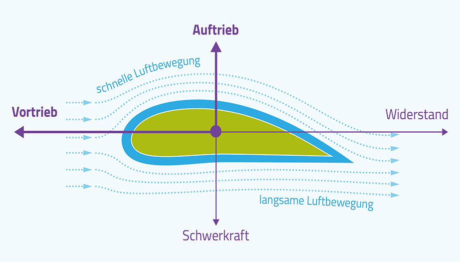 Grundsätzlich gilt: Die an den Flügeln vorbeiströmende Luft erzeugt Auftrieb. Die Auftriebskraft ist abhängig von der Flügelfläche und der Geschwindigkeit, mit der die Luft an den Flügeln entlangströmt. Die Oberfläche bzw. der Auftrieb der Tragflächen wird vor dem Start durch Ausfahren der Klappen und Vorflügel vergrößert. Darüber hinaus beeinflussen weitere Faktoren die Auftriebskraft: z. B. die Temperatur, die Höhe der Startbahn und das Gewicht des Flugzeugs.